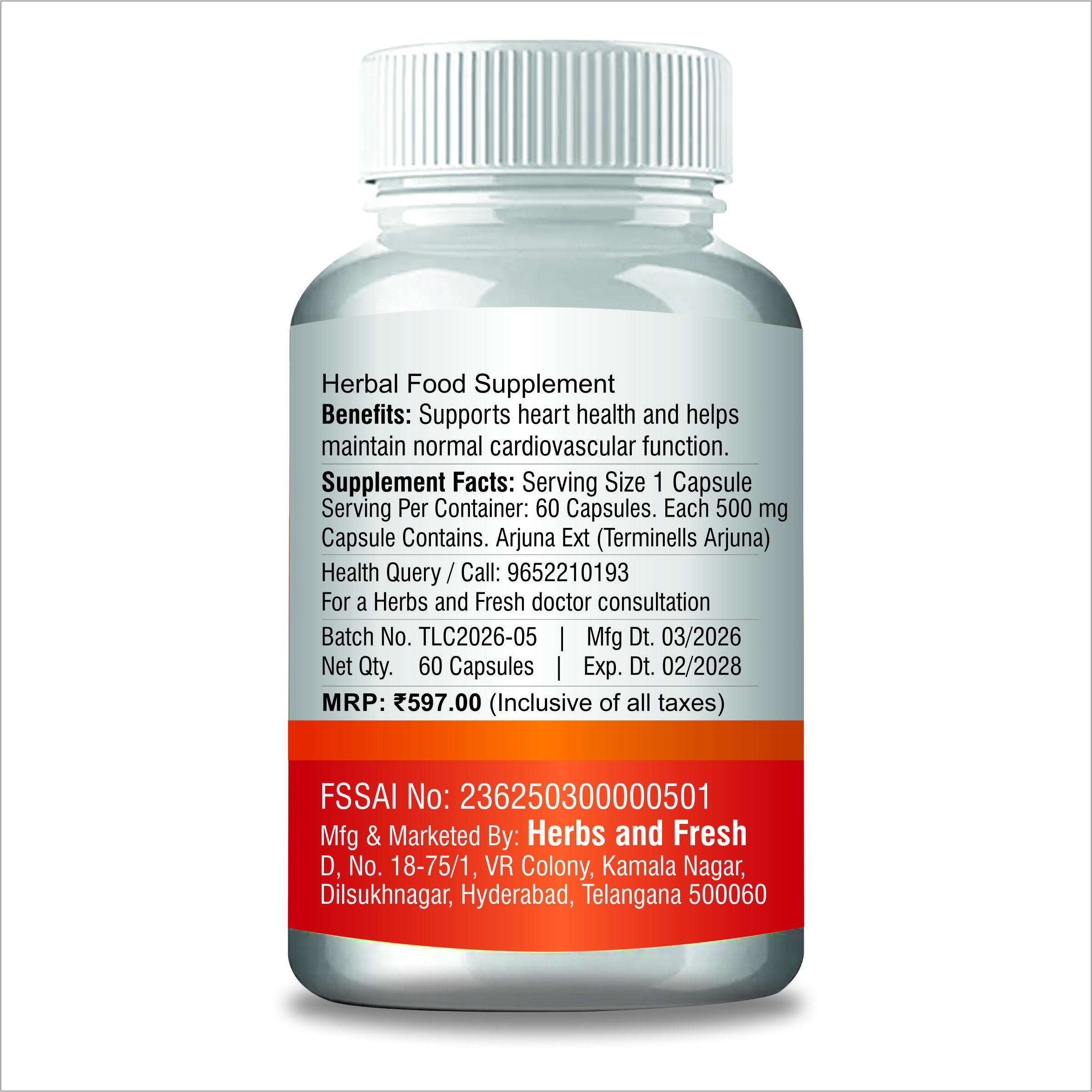 Formulated with pure herbal ingredients and produced in quality-controlled facilities, Herbs & Fresh Arjuna Capsules are designed for people who prefer natural wellness solutions as part of a healthy lifestyle.