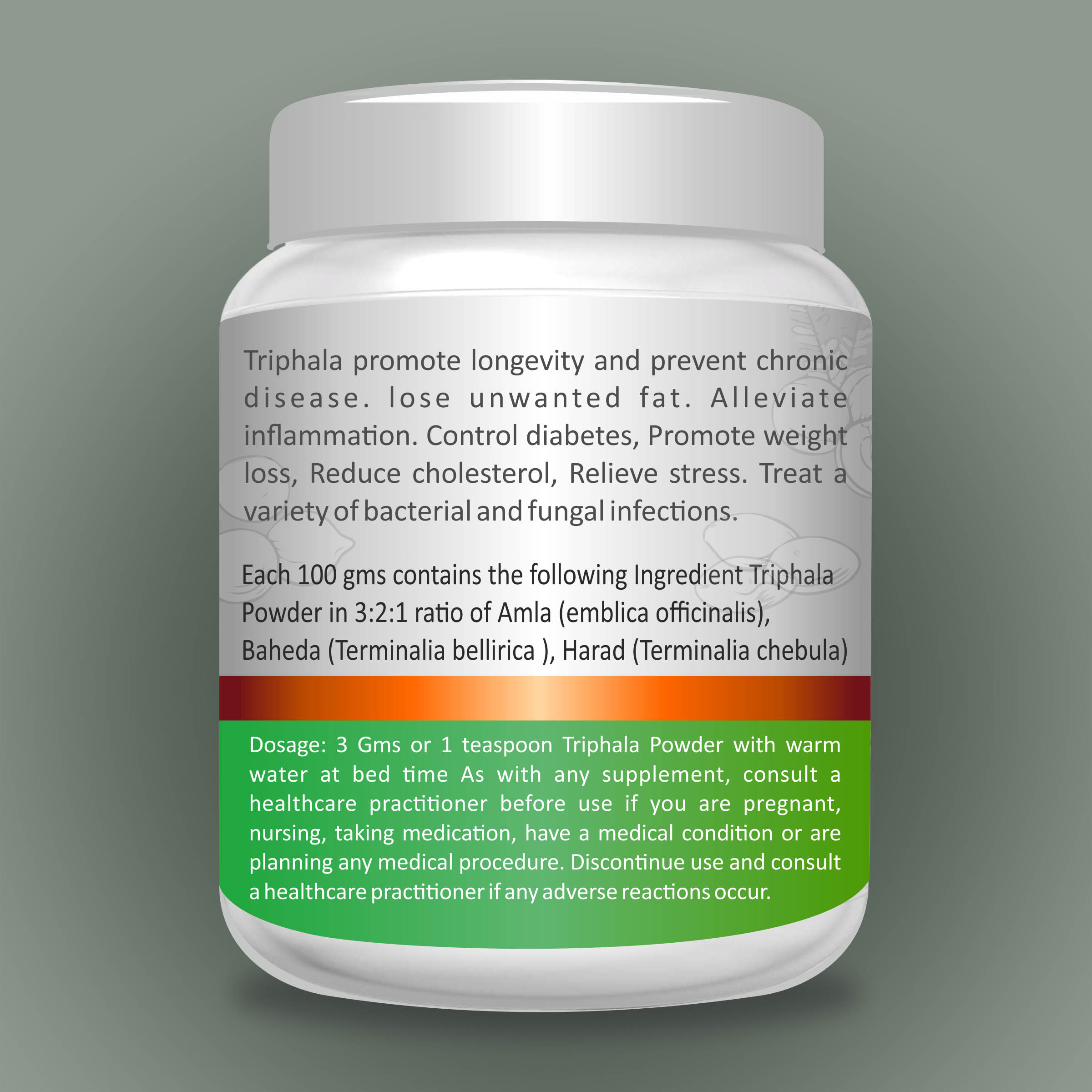 Take 1–2 teaspoons (3–6 g) of Triphala Powder with warm water or honey before bedtime, or as directed by your healthcare professional.